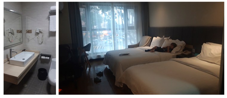 La habitación era amplia con una cama de 1.5 y otra de 1,2, bastante cómodas para los estándares chinos.