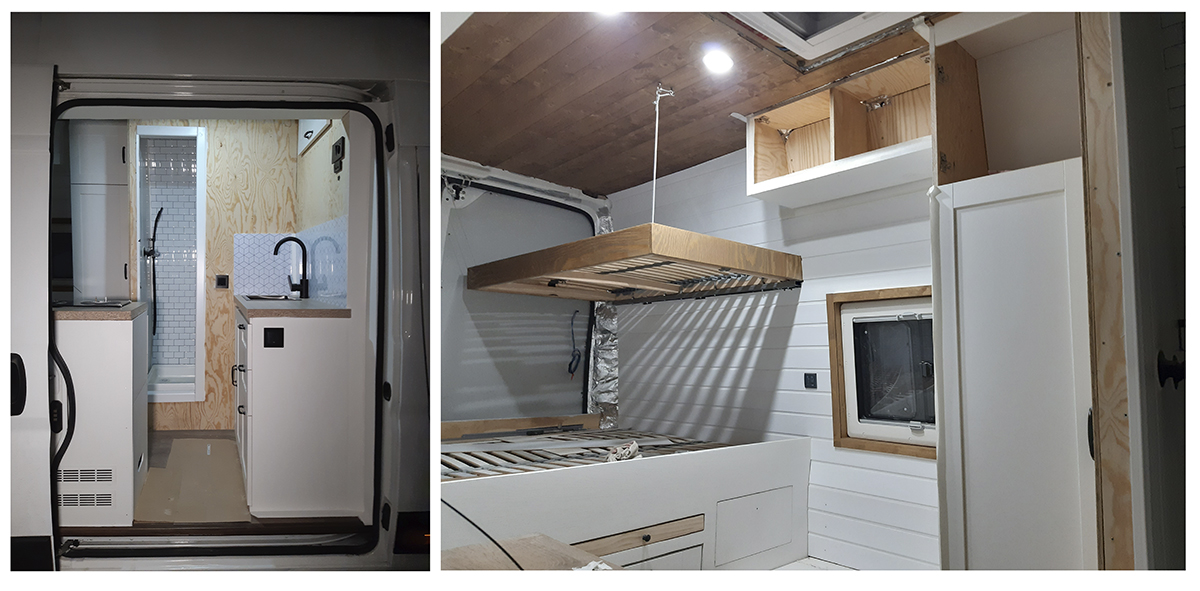 Nos decantamos por poner litera para nuestro peque, porque si algo teníamos claro es que tras 4 años montando y desmontando la cama en nuestra antigua furgo no queríamos tener que hacerlo en la nueva. Queríamos dos camas fijas.
